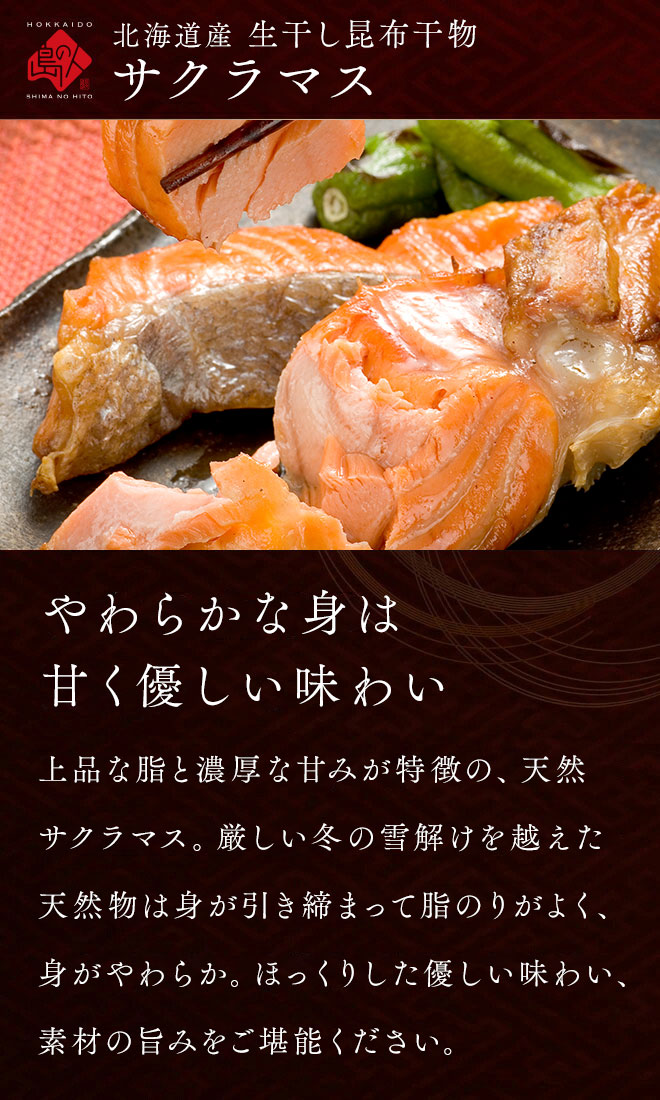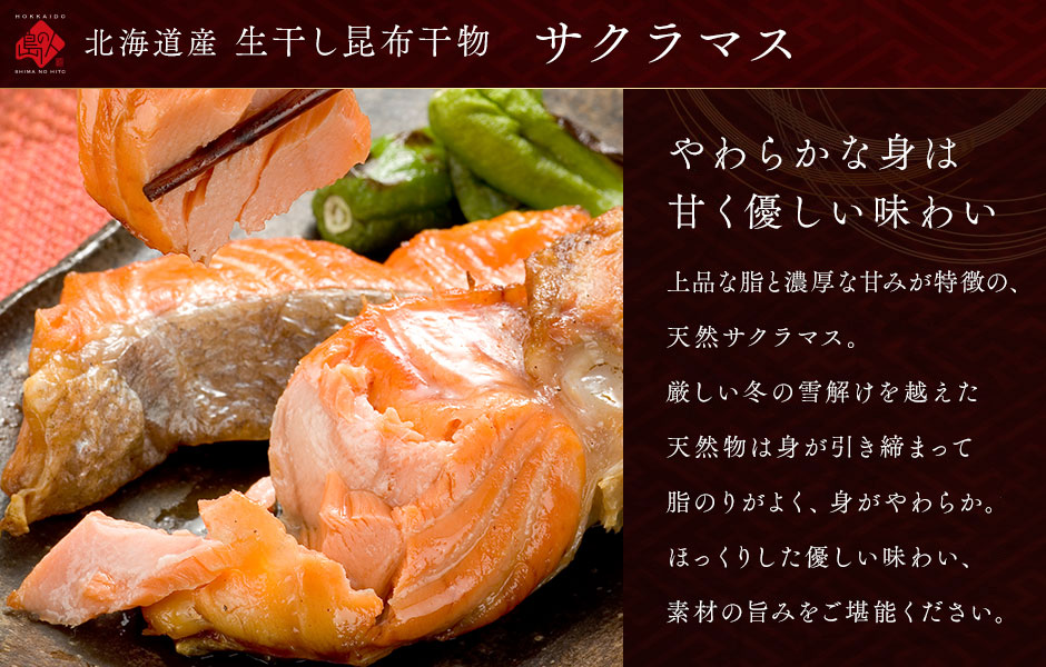 | 商品内容 | 【北海道産 プレミアム干物セット(7種類11尾入り)】 ○ 昆布干物 紅法華(特大) 2枚 ○ 昆布干物 ニシン開き 2枚 ○ 昆布干物 サバ開き(中 320g前後) 2枚 ○ 昆布干物 サクラマス1/4カット 1枚 ○ 北海道産 イカ一夜干し 2枚 ○ 昆布干物 滑多かれい 1尾 ○ 昆布干物 宗八かれい 1枚 *産地に関しましては予告なく変更となる場合がございます。 |
