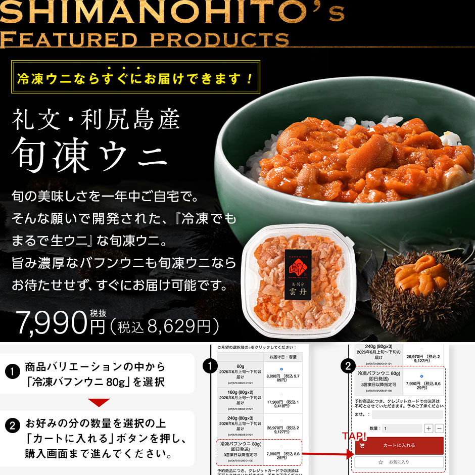 | 量の目安 | 1パックあたり80g(ウニ丼換算で約1~1.5杯分) |